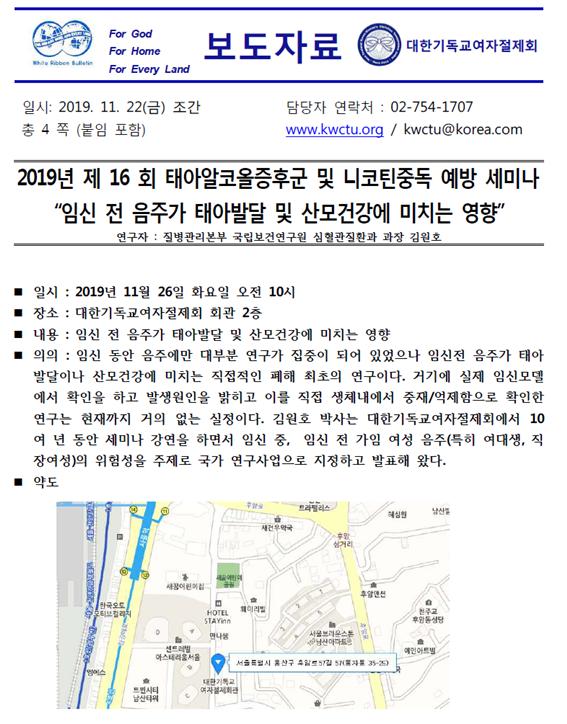- 2019년 제 16 회 대한기독교여자절제회 세미나 보도자료